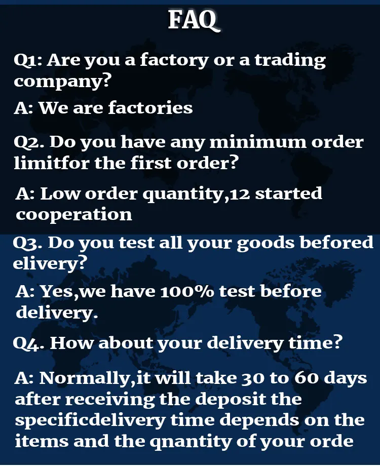 13 | After-sales and Quality Inspection Services | If you are not satisfied with the sample until it reaches a satisfactory state, you only need to pay for one sample fee. For subsequent orders with quality issues, a full refund will be given and compensation will be provided. |