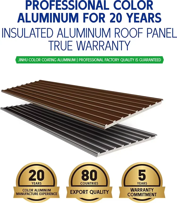 SANXIANG is a brand of insulated aluminum roof panel under Linyi Jinhu Color Coating Aluminum Industry Co.,Ltd.The company was founded in 2003 and is a company that focuses on metal materials such as color coated aluminum coil, aluminum composite panels,stone coated metal roof tiles,and insulation alumi- num roof panel.It integrates R&D,production and sales.The products are export- ed to 80 countries and regions such as Europe,North America,Southeast Asia and Africa,and are among the top 100 non-ferrous metal exporters in China.