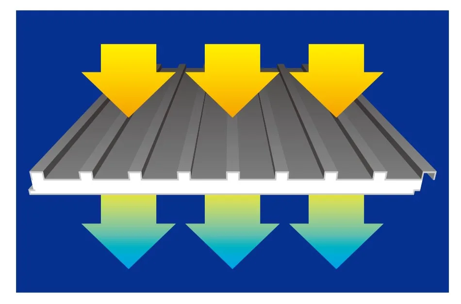 2)In times of high energy costs, our roof panels with a highly heat-insulating core of polyurethane rigid foam are the first